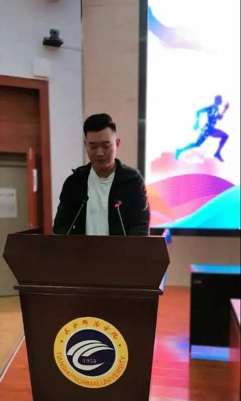 程院长也向新生提了几点希望寄语,第一、要有对国家的责任感。希望新生树立正确的社会主义核心价值观,传承体育学院的好传统,提振学习生活的精气神,励志勤学、刻苦磨炼,顽强拼搏,在担当中历练,在尽责中成长,在激情奋斗中绽放青春光芒、健康成长进步,争做作新时代有机体育人。第二、要有对家人的责任感。希望新生砥砺奋斗、永不言败,练就本领,夯实技能,走上社会时能做一个有担当、有责任的人,能够在披荆斩棘中创造出成绩。第三、要有对自己的责任感。希望新生抢抓机遇、增强才干、不负韶华,努力掌握科学文化知识和体育专业技能,努力提高人文素养,锤炼品格,争做新时代合格的大学生。