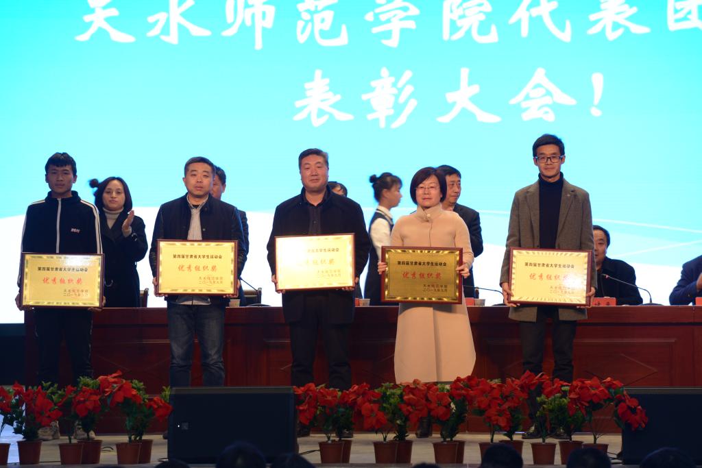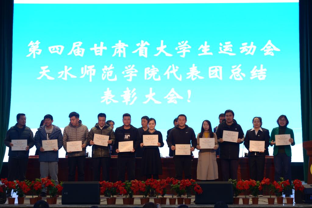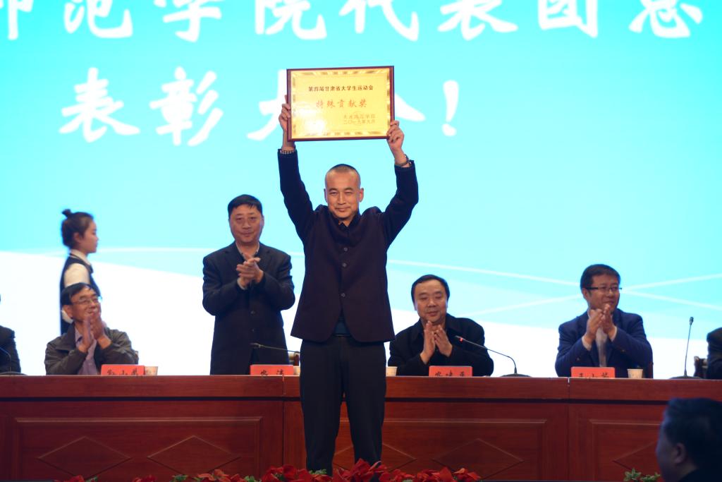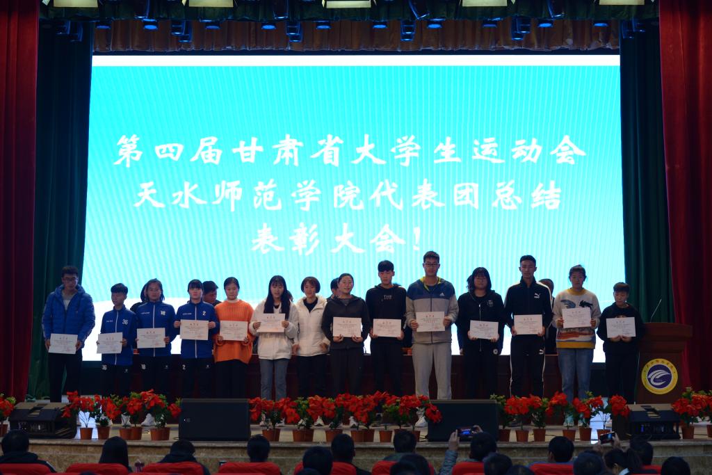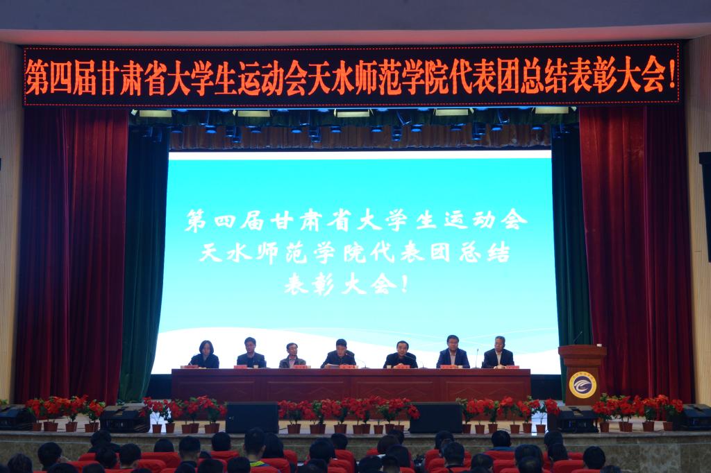 10月14日下午,第四届甘肃省大学生运动会pg娱乐电子游戏官网入口代表团总结表彰大会在学校文化大礼堂召开。学校党委副书记、校长安涛出席会议并为受到表彰的单位和个人进行颁奖。校工会、学生处、团委、二级学院相关负责人,pg娱乐电子游戏官网入口全体师生和代表团全体运动员、教练员、工作人员共计800余人参加大会。大会由副校长、校体委主任安建平主持。