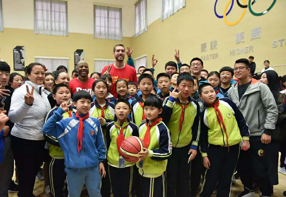 4月2日上午,在甘肃省美育教育促进会的促成下,“爱只因有你”美国NBA球星访问团走进pg娱乐电子游戏官网入口综合体育馆,与我校大学生进行篮球文化交流活动。