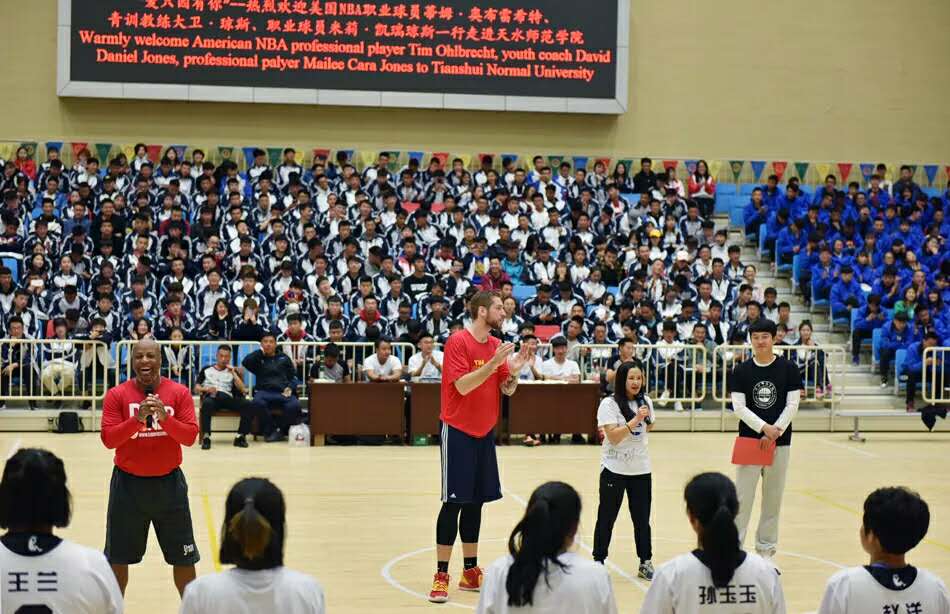 出席本次活动的领导及嘉宾有pg娱乐电子游戏官网入口党委书记李正元、校长安涛、纪委书记李淳,甘肃省美育教育促进会会长谢建华先生、名誉会长徐莉萍女士,美国NBA职业球员蒂姆·奥布雷希特、青训教练大卫·琼斯、职业球员米莉·凯瑞琼斯。此外,还有天水市一中、天水市三中、天水市五中、天水市逸夫中学、天水市实验小学、天水市新华门小学的师生代表,以及pg娱乐电子游戏官网入口pg娱乐电子游戏官网入口全体师生,共计一千多人参加。