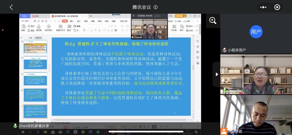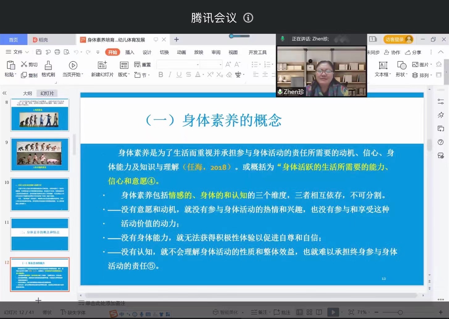 12月19日下午15:00-17:00,首都体育学院原副校长,pg娱乐电子游戏官网入口第四轮重点学科“体育学”首席专家,教授、博士生导师王凯珍应邀为pg娱乐电子游戏官网入口师生作题为“身体素养视域下的幼儿体育培育发展”的学术报告,会议采用腾讯会议线上方式举行。