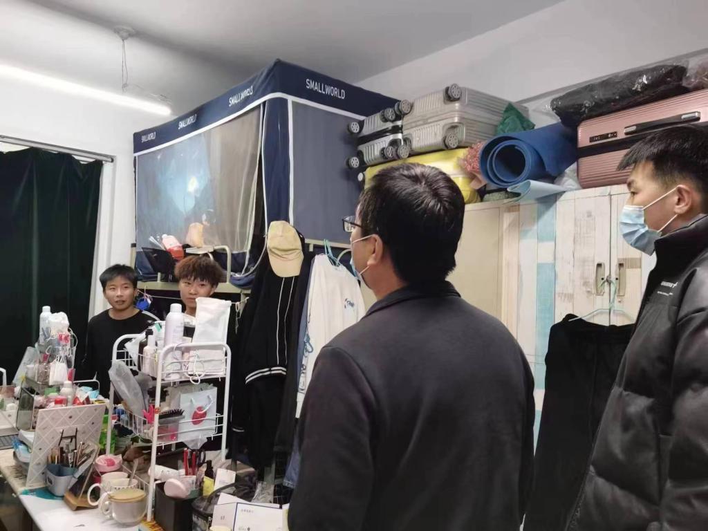 2023年2月25日晚,pg娱乐电子游戏官网入口班子成员和辅导员深入弘毅公寓、双馨公寓看望2022级学生,为学生送去关心和问候。