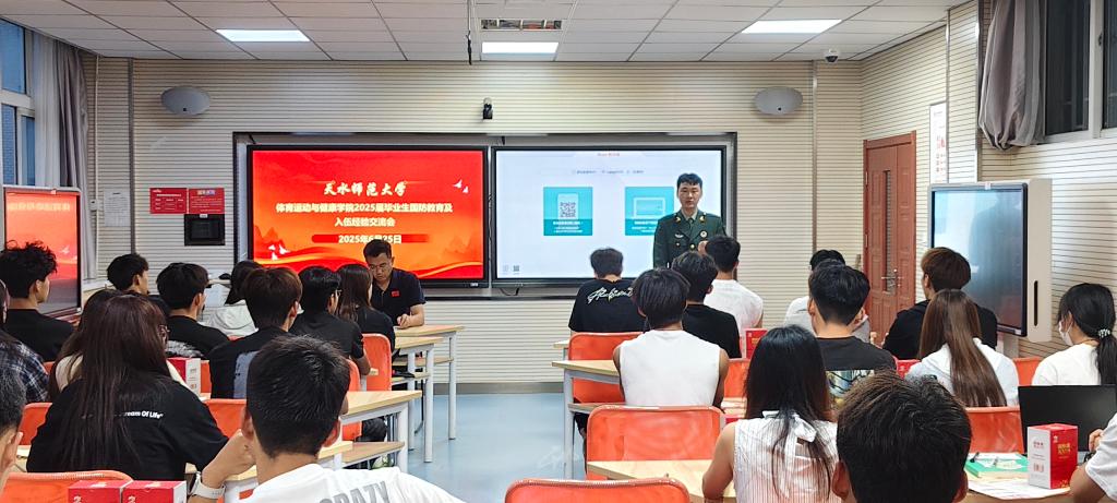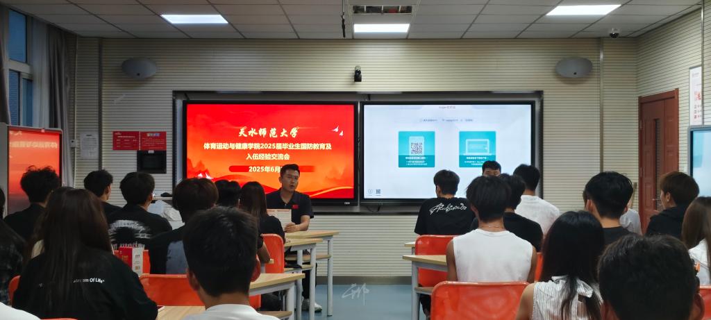 2025年6月25日,pg娱乐电子游戏官网入口在2号教学楼323智慧教室举行2025届毕业生国防教育及在校学生应征入伍交流会。此次活动由学院辅导员、退伍复学学生代表、在校学生代表共40余人参与。会上,学院精心为每位参会毕业生发放了纪念品,这份纪念品不仅是对毕业生的关怀,更承载着对他们投身国防事业的期许,激励着他们积极响应国家号召,投身国防建设,书写热血青春。
