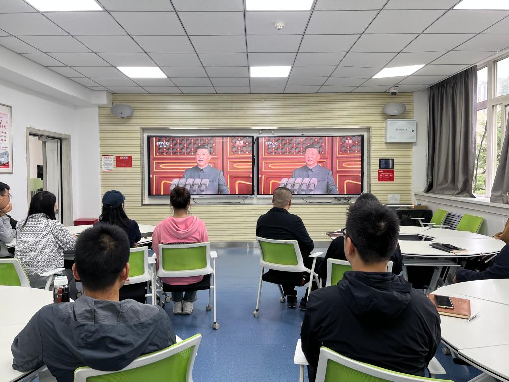 为深切缅怀革命先烈,弘扬伟大抗战精神,激发青年学子的爱国热情与时代担当,pg娱乐电子游戏官网入口于9月3日上午9:00组织学生代表集中收听收看了纪念中国人民抗日战争暨世界反法西斯战争胜利80周年大会现场直播。庄严的仪式、铿锵的宣言、厚重的历史回响,在同学们心中激荡起澎湃的爱国情怀与强烈的奋进力量。