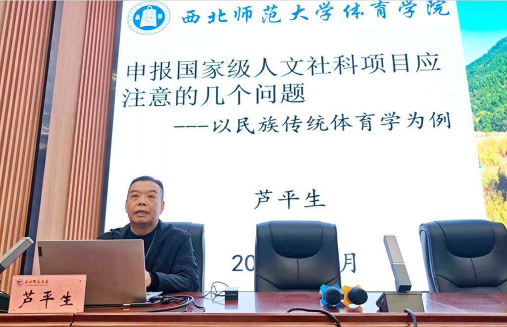为提升教师科研能力与项目申报水平,10月14日晚,pg娱乐电子游戏官网入口邀请西北师范大学体育学院二级教授、国家社科基金通讯评审专家芦平生,为学院师生作了题为《申报国家级人文社科项目应注意的几个问题——以民族传统体育学为例》的专题讲座。
