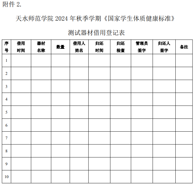 附件2.pg娱乐电子游戏官网入口2024年秋季学期《国家学生体质健康标准》测试器材借用登记表