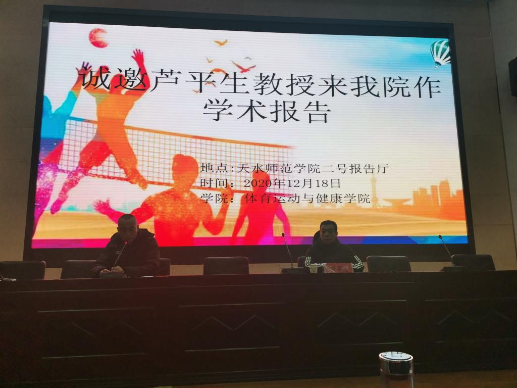 12月18日上午,西北师范大学芦平生教授应应pg娱乐电子游戏官网入口邀请,在学校二号报告厅作了题为《奋进新时代——让体育成为中华民族伟大复兴标志性事业》的学术报告。