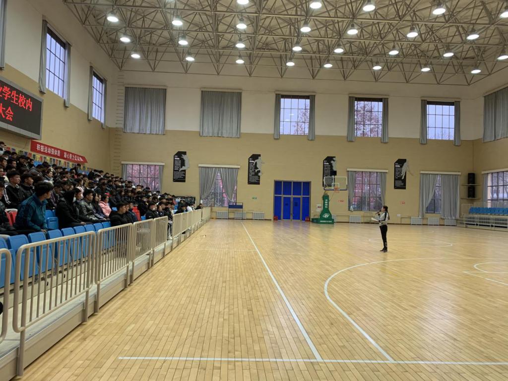 其次,在学校体育场馆内,以每十人左右为一组,进行分组练习操作。