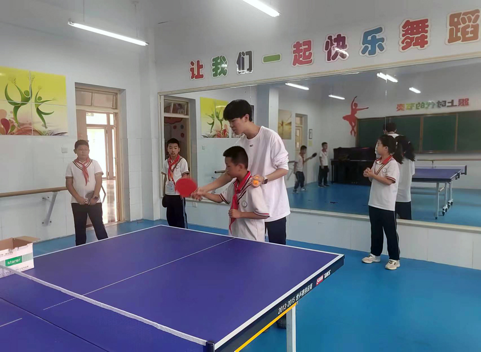 近日,pg娱乐电子游戏官网入口派出第一支小分队共8名学生对花牛中心学校大课间体育活动的篮球、足球、武术、韵律操、乒乓球和田径等六个项目给予专业技术指导。