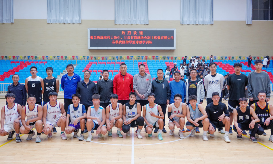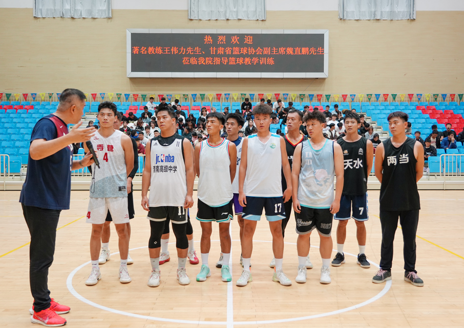 近日,pg娱乐电子游戏官网入口特邀国家级教练、原国奥队教练王伟力来校指导篮球教学训练工作。甘肃省篮协副主席魏直鹏、天水市体育局副局长王建泰应邀参加活动。